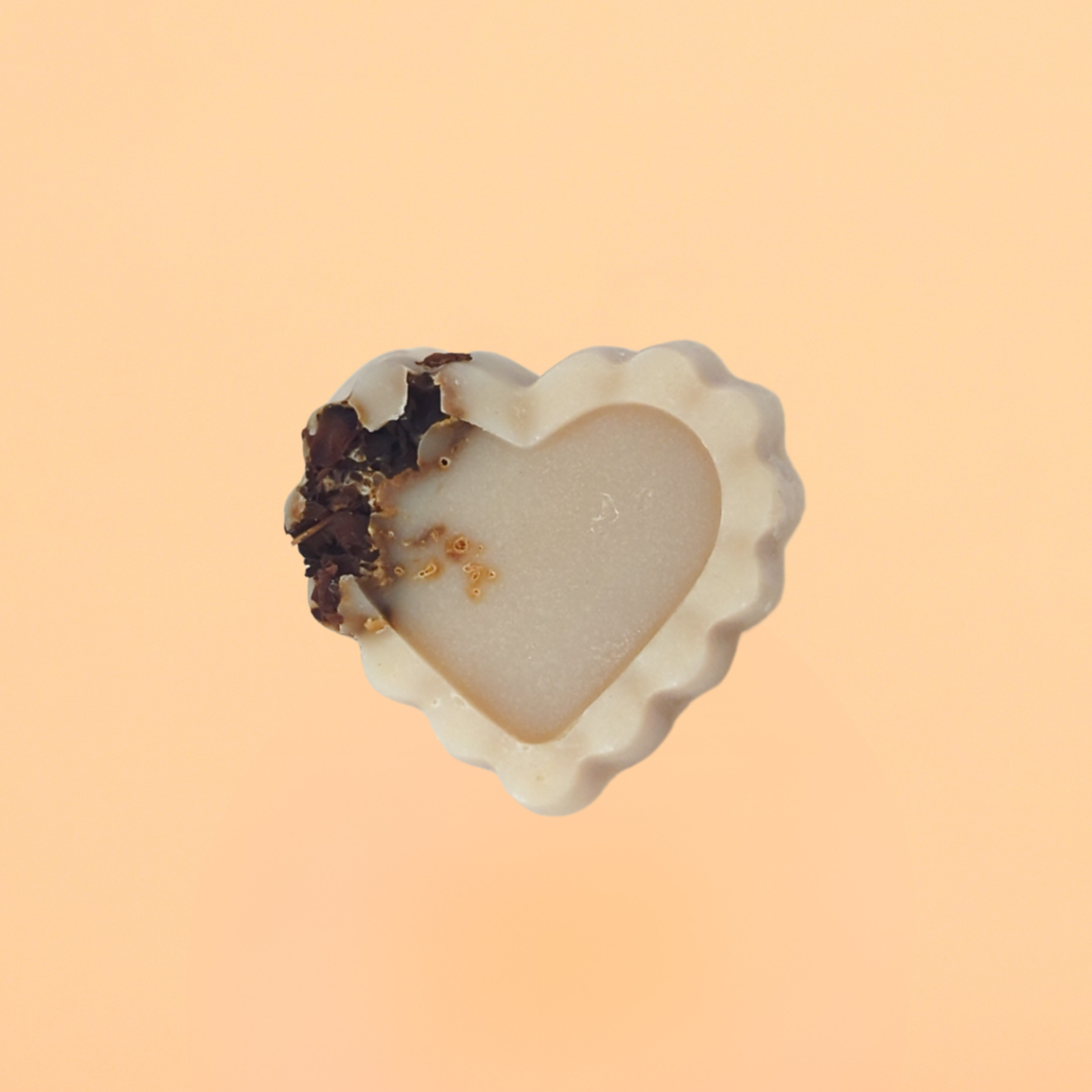 Pretty, soft, and full of love. These scalloped heart-shaped bars are naturally scented with strawberry and rose, and topped with real rose petals in one sweet corner. Made with nourishing oils and butters, they lather up creamy and gentle—perfect for gifting, or treating yourself to a little everyday beauty. Simple, lovely, and made with care.