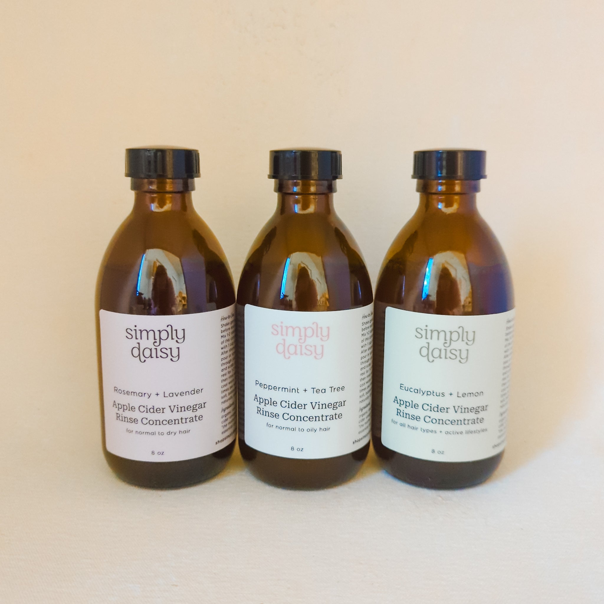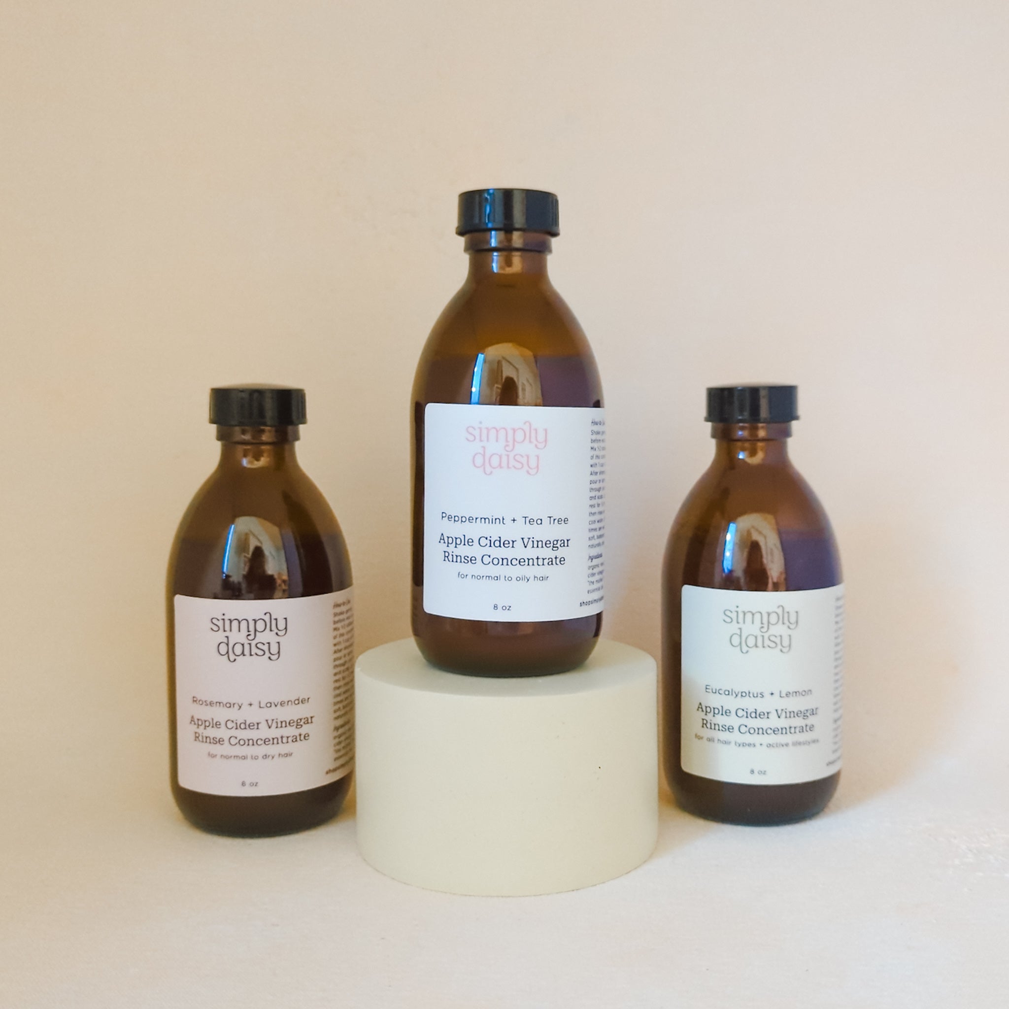 Refresh your hair the simple way. Our Apple Cider Vinegar Rinse Concentrate is made with raw ACV “with the mother” and pure essential oils to smooth, soften, and bring balance back to both hair and scalp.