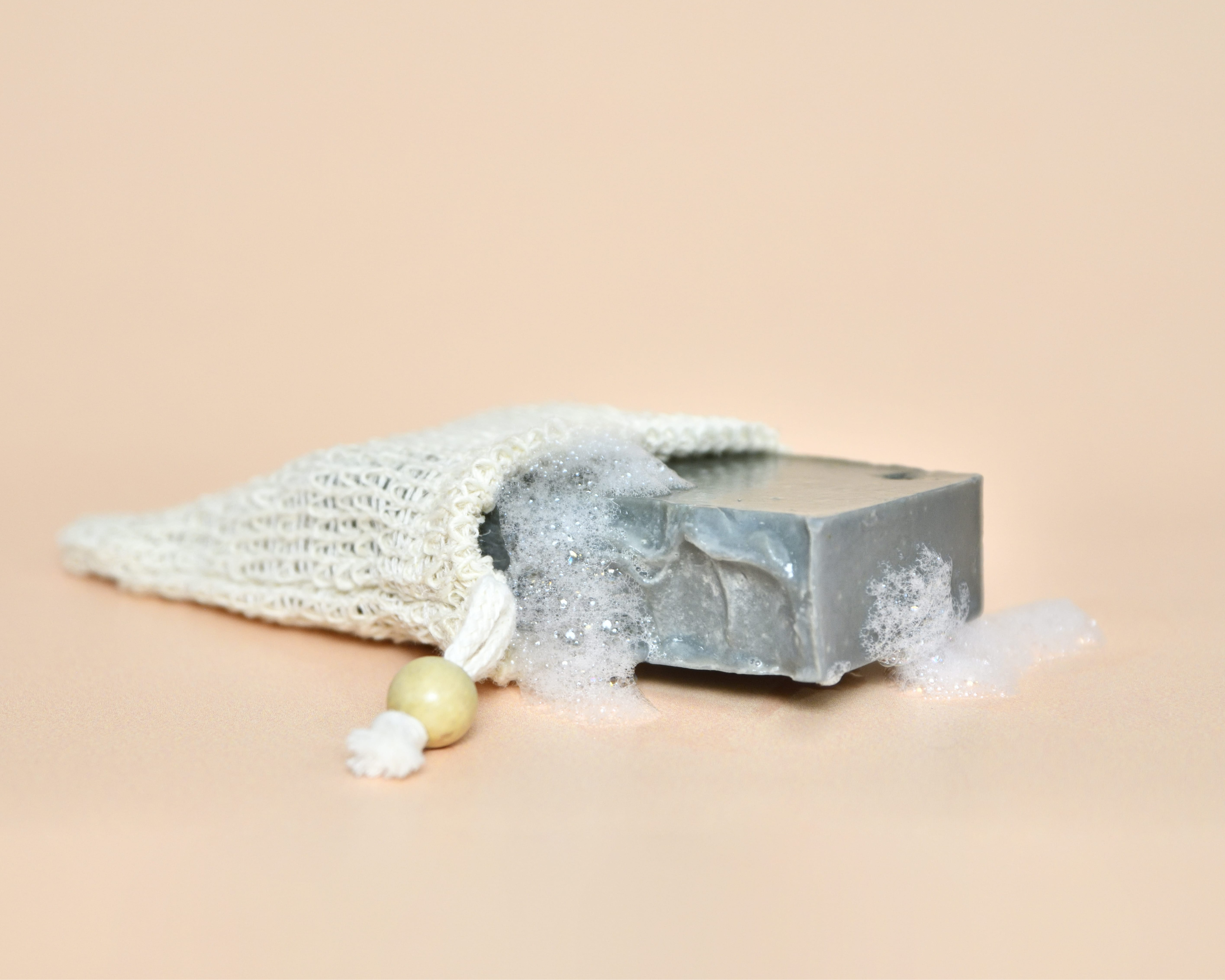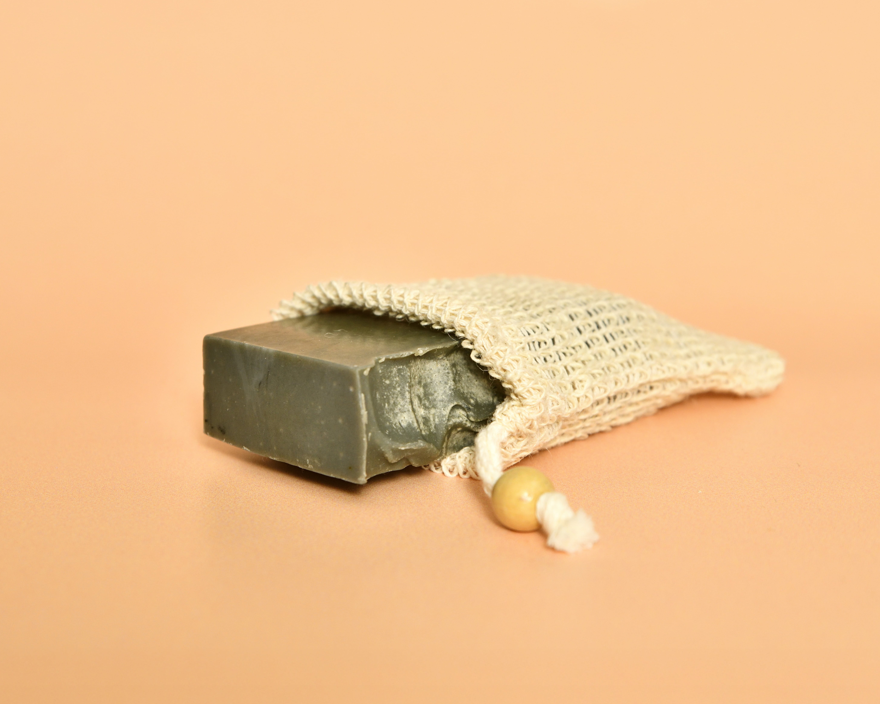 Place soap pieces or a full bar into the bag. Wet under warm water, rub to lather, and use directly on skin. Rinse and hang by the drawstring to dry between uses. Machine washable if needed.